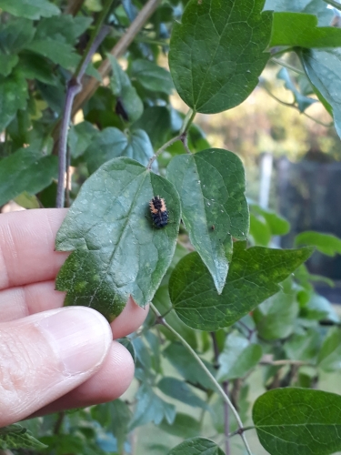 J’ai commencé par voir une nymphe de coccinelle sur un arbuste. Puis, quelques jours plus tard, l’aînée et son papa en ont comptabilisé quatre sur ce même arbuste. La nymphose durant une semaine, nous avons surveillé la première nymphe pendant une jolie journée à profiter du jardin. Et soudain, nous avons aperçu cette coccinelle sans... Lire la Suite →