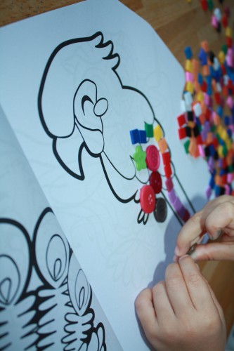 Laissez tomber les feutres et crayons et sortez des petits carreaux de mosaïque en plastique ou tous vos boutons de secours fournis avec les vêtements (si rarement utilisés) ainsi que des modèles de coloriages. Voici une activité qui a occupé presque une demi-heure ma fille : décorer deux oiseaux avec ces petits bouts de plastique. Elle... Lire la Suite →