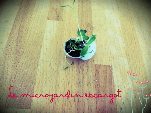 Trouver une coquille désertée depuis longtemps par son escargot. Y ajouter un peu de terre. Puis quelques petites graines. Arroser et patienter. Découvrir un micro-jardin.