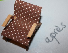 J'ai chiné des petits meubles pour la maison de poupée, mais ils ne sont pas toujours en bon état. Un coup de pinceau ou, ici, un morceau de tissu adhésif (Dailylike by Toga) et c'est reparti pour une nouvelle période de jeu.