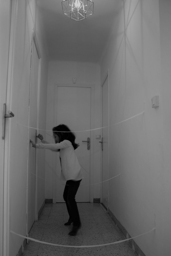 Si vous avez un couloir chez vous, du scotch de masquage et trois minutes de libre... proposez à vos enfants de tester leur souplesse et de jouer au cambrioleur d'œuvre d'art évitant les lasers d'un musée.