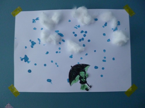 Activité enfant : technique mixte du nuage et des gouttes de pluie